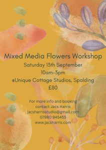 Whether you’re a beginner or a seasoned artist, this workshop invites you to explore a rich blend of materials like watercolours, collage, oil pastels, pastels, crayons, ink pencils, pens and mark making/texture tools to create stunning floral artworks.